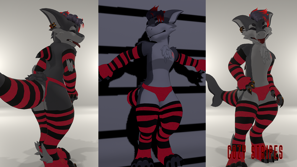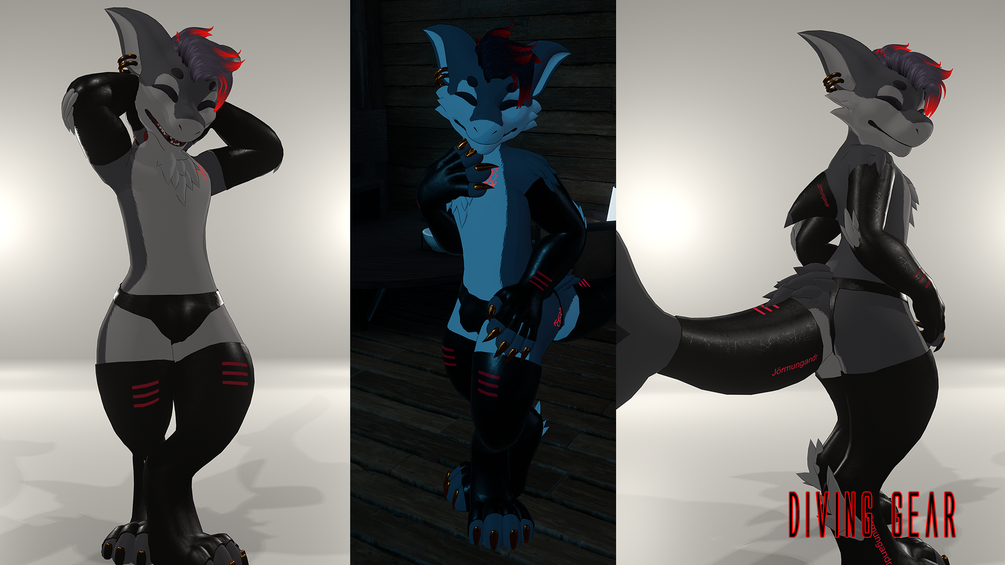 Default look of metallic red latex, snugly knitted stripes, or warn in diving gear are all color adjustable directly in unity before uploading.